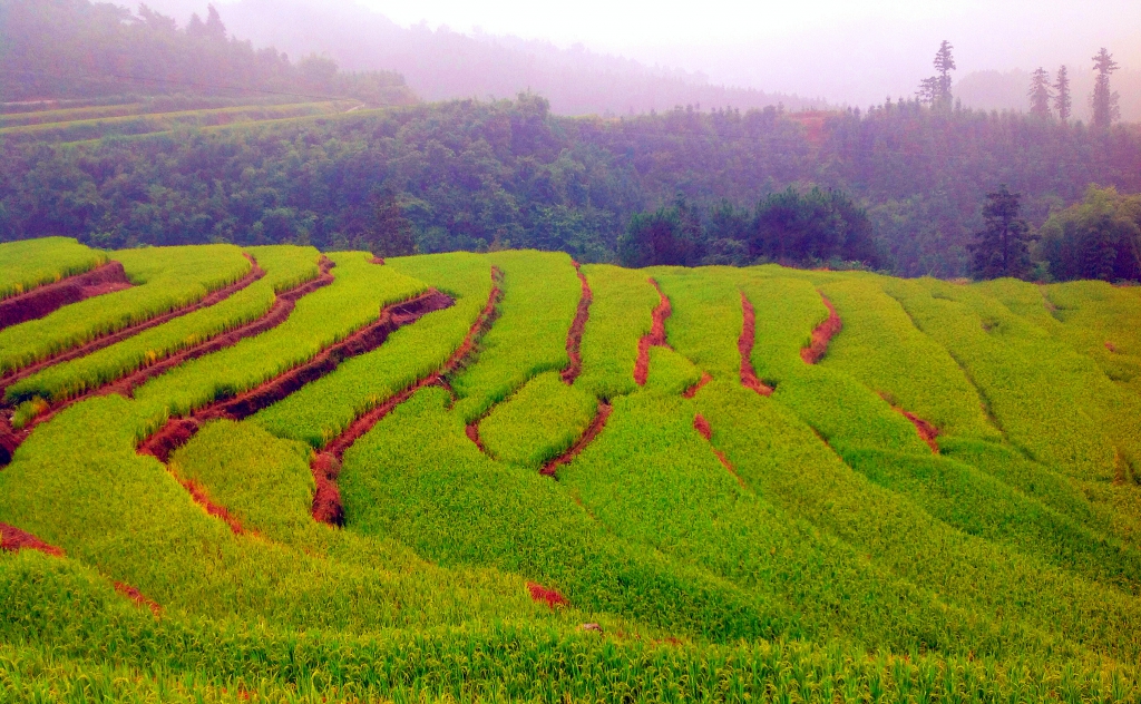黑山村座落在大雾山脚下,梯田成片,坡度在30度左右,最陡处达50度,层层叠叠,位于海拨500米~1000米之间,蔚为壮观。最为神奇的是,大雾山梯田偌大的地方,并无一口水塘,全靠山泉水灌溉,真是山有多高,水就有多高,水有多高,田就有多高。全凭山泉水灌溉的“瑶山春”天然稻米,是来自“原山、原水、原生态”耕播种植的纯天然绿色生态食品,也是营养丰富、健康养生的理想绿色生态食品。